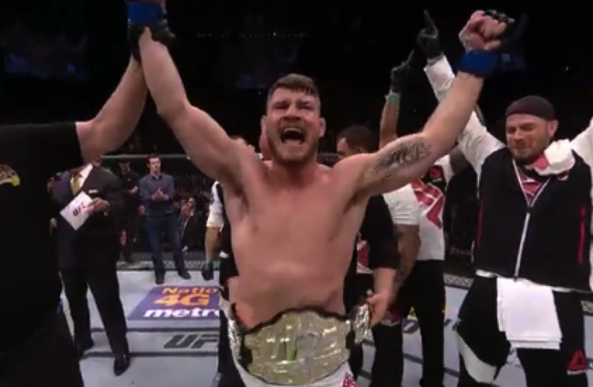 A STUNNING OVERNIGHT upset has seen Michael Bisping crowned UFC middleweight champion at The Forum in Los Angeles.