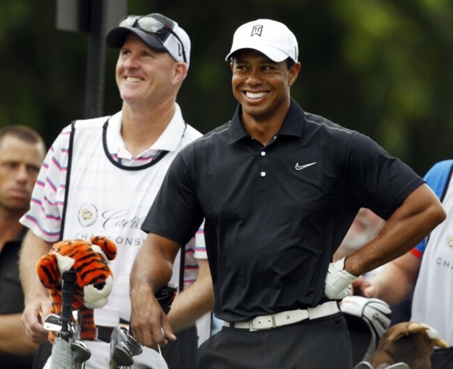 Tiger Woods shares a joke with caddie, Joe LeCava. / Lynne Sladky/AP/Press Association Images