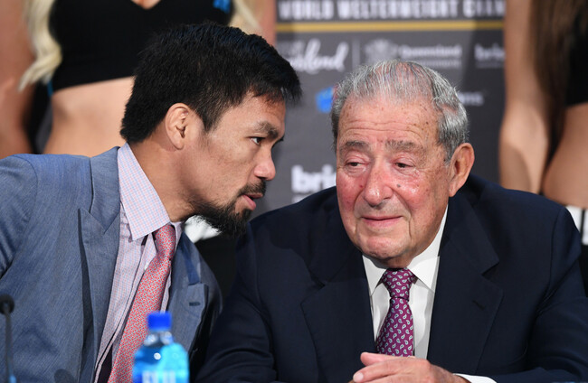 TOP RANK FOUNDER and CEO Bob Arum has dismissed a purported fight between his charge Manny Pacquiao and the UFC’s Conor McGregor, and welcomed UFC president Dana White to boxing promotion in typically unrefined fashion.