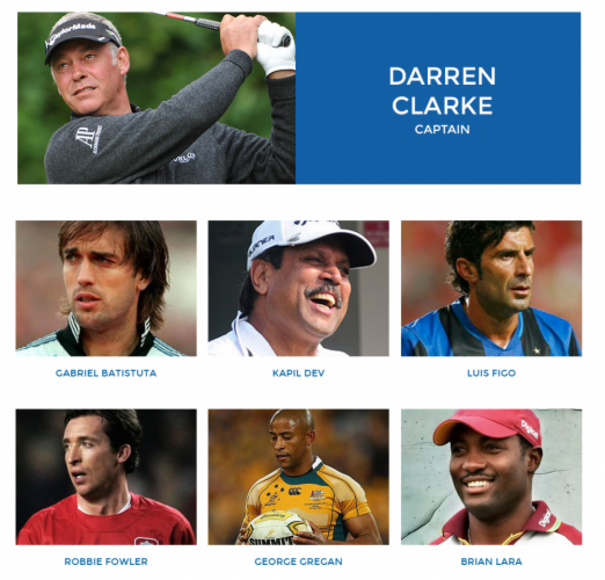 The retired centres will team up on a rest of the world team captained by Clarke against Fred Couples USA team.