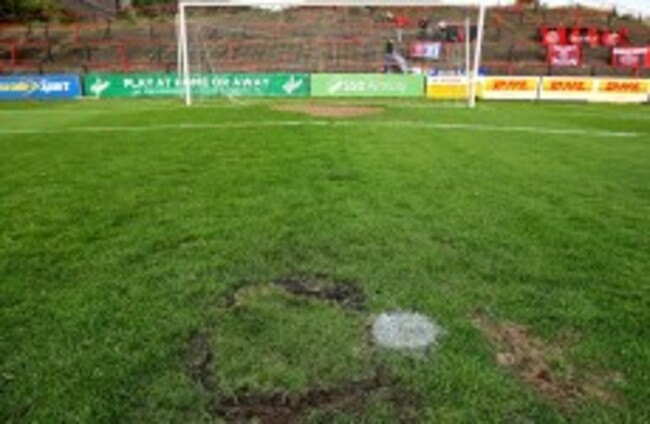 “A small repaired area behind one penalty spot had been identified by the referee as a particular issue. Agricultural scientist Pat Suttle reported to Bohemian FC “that the area in question did not constitute a hazard of such seriousness that it would cause serious injury to players”.