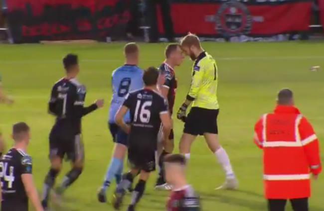 UCD goalkeeper Kearns celebrated the victory in the direction of the away fans, before Bohs skipper Pender ran over to square up to him.