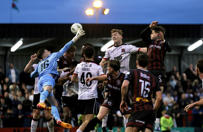 The action soon resumed at the other end, Goddard well positioned to comfortably gather shots from Alex Greive and Tierney in turn as Bohs pinned Dundalk in their own half.