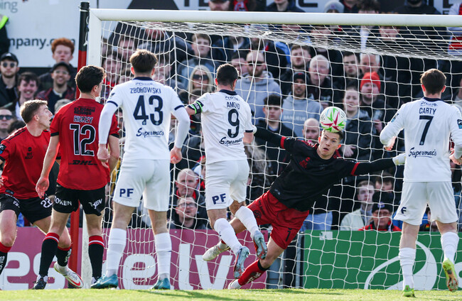 With just a couple of minutes played, Dawson Devoy stung the knuckles of Arlo Doherty, who punched away a thunderous inswinging free kick. From the corner, the Bohs skipper delivered a pinpoint delivery onto the head of Connor Parsons. The winger’s downward header fooled many home fans into thinking they had taken the lead, only for the ball to miss the bottom corner by a matter of inches.