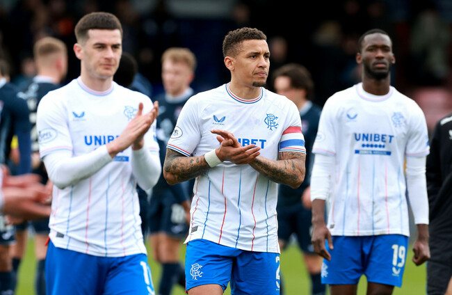 With six fixtures remaining Philippe Clement’s side are four points behind leaders Celtic with a game in hand against Dundee at Dens Park on Wednesday night but it is the Hoops who now look to be in command.