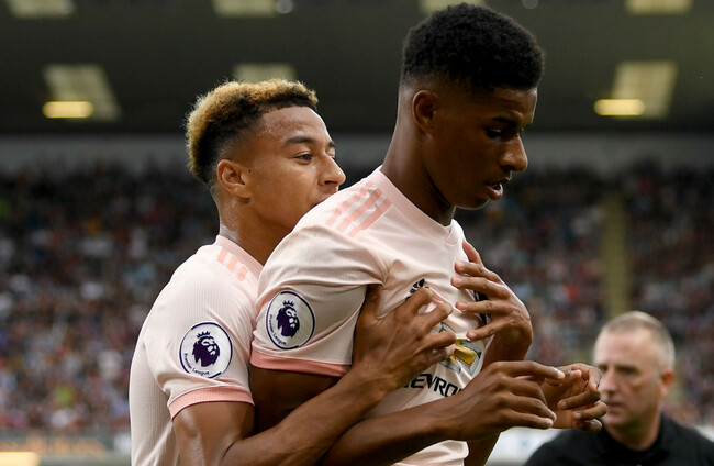 Manchester United's Jesse Lingard and Marcus Rashford celebrate their late winner against Bournemouth.
