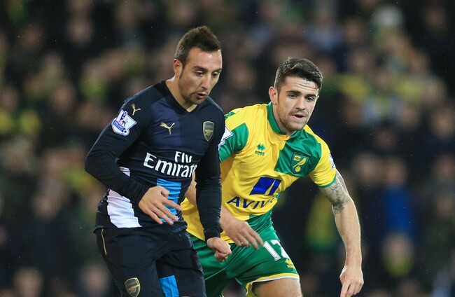 Norwich caused a few problems with some early set-pieces and Ozil should have opened the scoring for Arsenal when he was picked out in the box by Nacho Monreal. The German dragged his effort off target, with Sebastian Bassong clearing the danger.