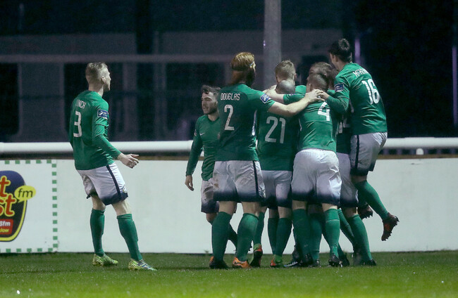 BRAY WANDERERS: Aaron Dillon; Dan McKenna, Hugh Douglas, Conor Kenna, Kevin Lynch; Paul O’Conor, Rhys Gorman; Ronan Coughlan, Gary McCabe, Cory Galvin (Jake Kelly, 89); Aaron Greene (Daniel Kelly, 26).