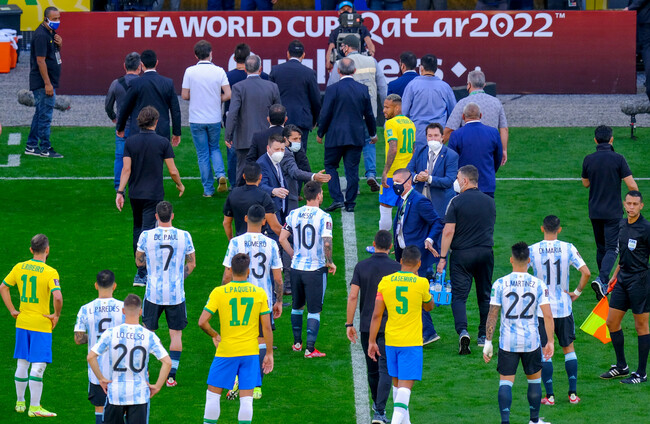Brazilian health officials stormed the pitch seven minutes into the clash on 5 September between the South American giants in Sao Paulo, stopping the match and triggering a melee involving team officials and players.