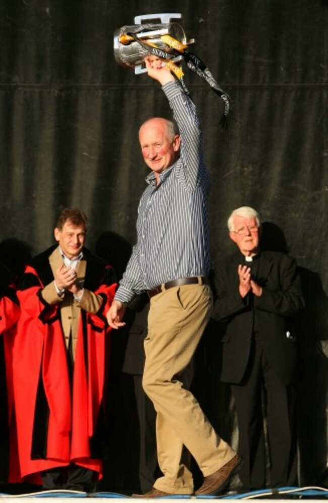 Proudly raising the Liam MacCarthy Cup aloft for the fifth time as manager.