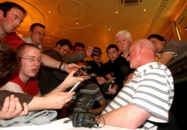 Hanging with supporters and the media before his first All-Ireland final press night as manager.