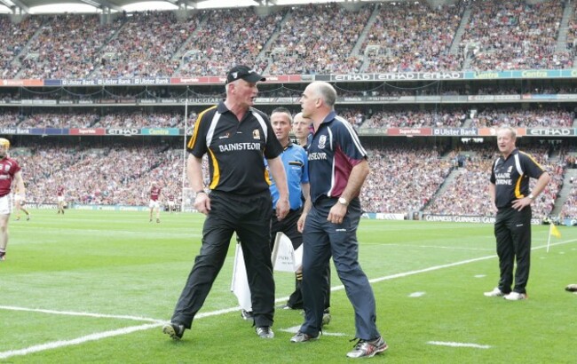 Cody and Anthony Cunningham battle it out on the sideline on All-Ireland final day. Galway are seen off after a replay.