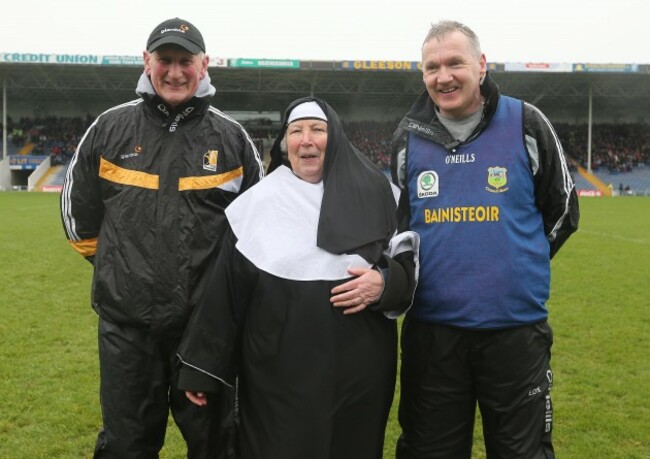 The Kilkenny boss with Sister Patricia Wall, who was embarking on a charity sky dive, and Tipperary manager Eamon O’Shea.