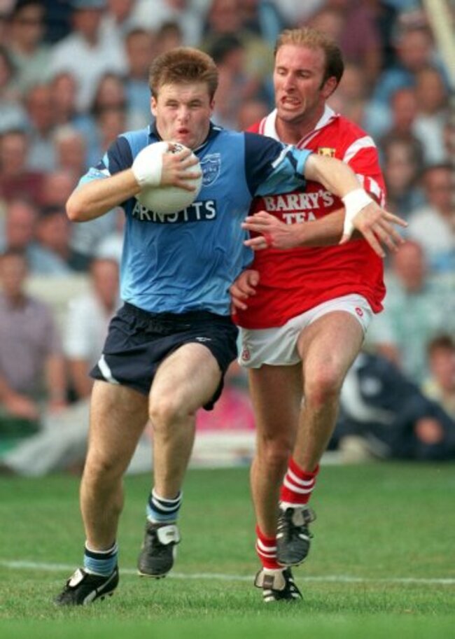 Dessie Farrell of Dublin under pressure from the Erin’s Own man in 1995.