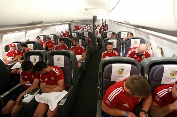 The Lions squad arrives in Australia