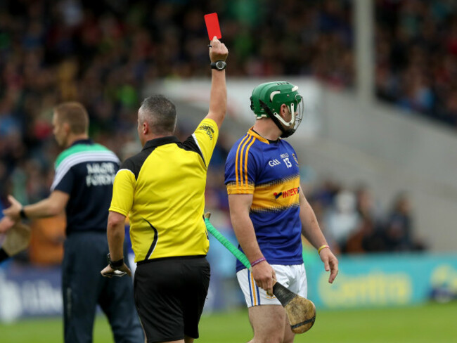 The Tipperary forward lashed out at Richie English in the 14th minute and was given his marching orders, resulting in a one-match ban that will see him miss out on Sunday’s provincial decider against Waterford at the Gaelic Grounds.