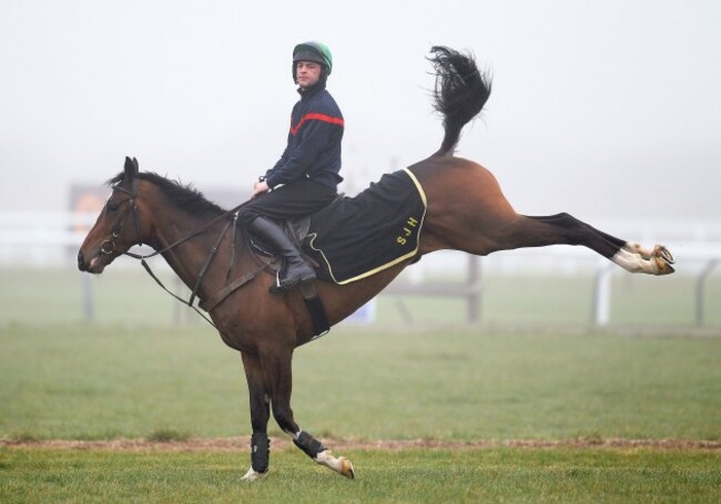 IT’S THAT TIME of the year again. The Cheltenham Festival gets underway tomorrow, kicking off four days of top class racing at Prestbury Park. And it seems it’s not just the punters who seem to getting excited, if this picture by Inpho’s Dan Sheridan of runners and riders on the gallops this morning is anything to go by. We know how he feels.