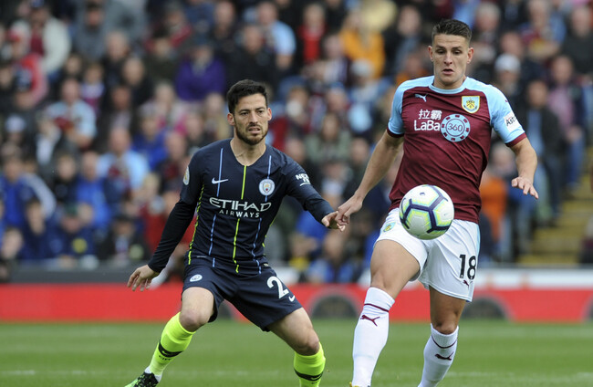 A sticky moment for Burnley behind. Bernardo Silva’s pass into the box nearly finds Sergio Aguero, but the striker loses his footing as Ben Mee stays composed and alert to usher the ball away from danger.