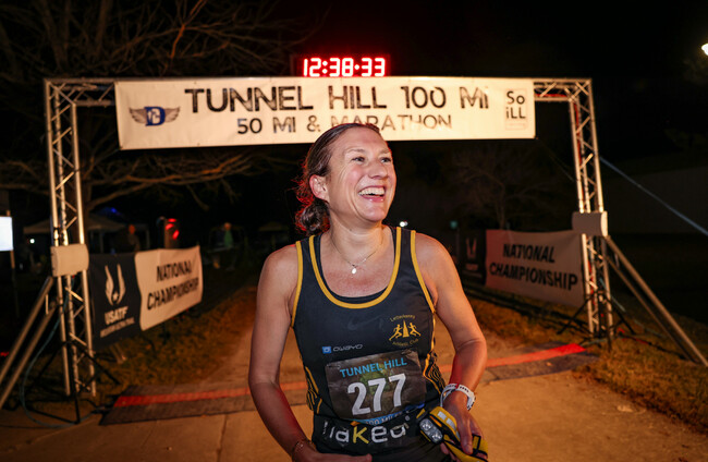 But this was a new level of mileage for her. She was on her way to setting a new women’s world record over 100 miles, and there was no way to anticipate what the remaining 40 miles of the Tunnel Hill 100 Mile would bring.