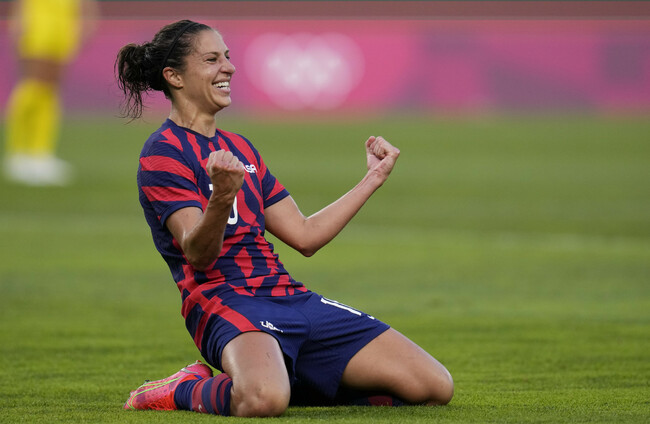 Lloyd celebrating a goal at the Tokyo Olympics. Fernando Vergara