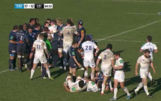Nigel Owens is getting wolf-whistled as their scrum disintegrates but play continues. The ball is eventually knocked on and Castres get the put-in. 46 minutes gone.
