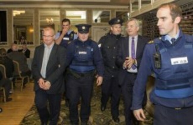 Four Gardaí entered the meeting room and apprehended the duo, with many stunned delegates speaking out in protest as the officers were led from the building.