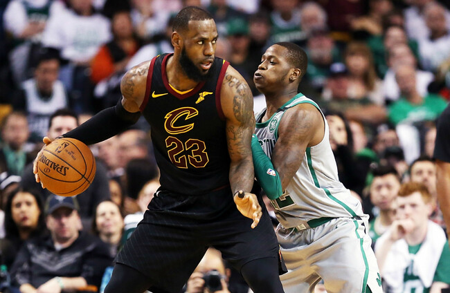Terry Rozier led the Celtics off the bench with 21 points, nine rebounds and five assists. Former Cavs star Kyrie Irving added 18 points and five assists, and he shared a nice hug with James after the game.