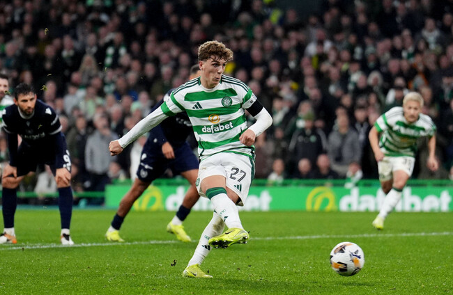 Celtic stepped it up immediately after the break. McCracken made a diving save from Palma’s 20-yard curler before producing a wonderful reflex stop to deny Furuhashi. The danger was still very much alive but Ryan Astley blocked from Palma on the line.