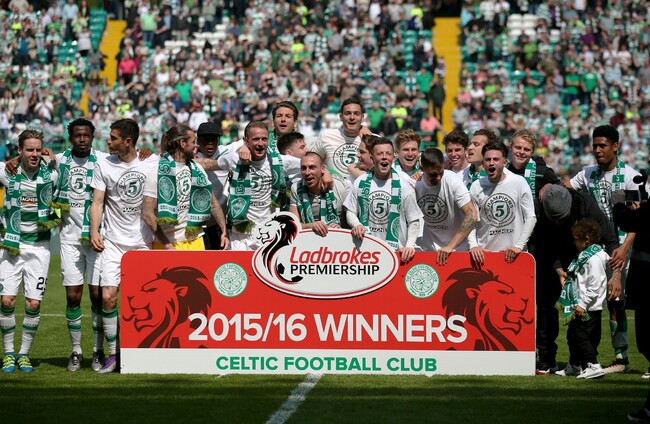 CELTIC CLINCHED THE Scottish Premiership championship for the fifth time in a row as they survived a nervy finish to seal a 3-2 win over nearest challengers Aberdeen at Parkhead.