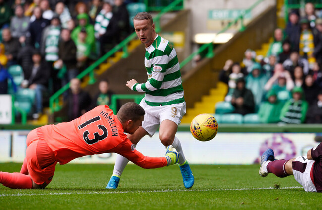 LEIGH GRIFFITHS STRUCK twice as Celtic made a flying start to their Scottish Premiership title defence with a 4-1 thrashing of Hearts on Saturday.