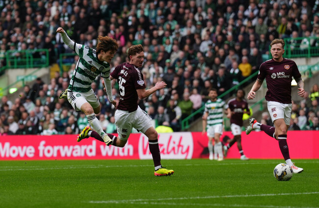 Furuhashi capitalised on balls over the Hearts defence from Reo Hatate and O’Riley to claim his first double of the season.