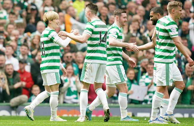 The Hoops clinched their 10th cinch Premiership title in 11 years at Dundee United on Wednesday night to ensure a party in the last game of the season, where a double from striker Kyogo Furuhashi and a goal in-between by former Well midfielder David Turnbull made it 3-0 at the break.
