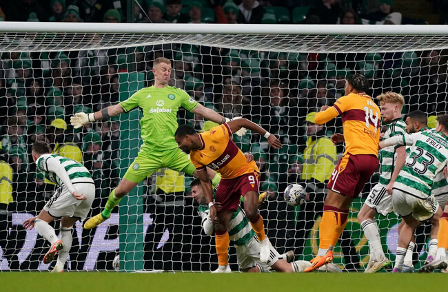 Liam Scales soon came close with a more difficult header as his effort drifted wide of the far post from Turnbull’s corner, but the danger was not over for Motherwell as replays showed Butcher had held back Johnston as he followed in the header.