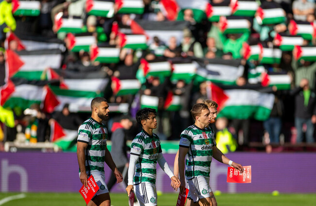A section of Celtic’s support has long held an affiliation with the Palestinian cause, with the club having previously been sanctioned by Uefa for banners or flags showing support for Palestine.
