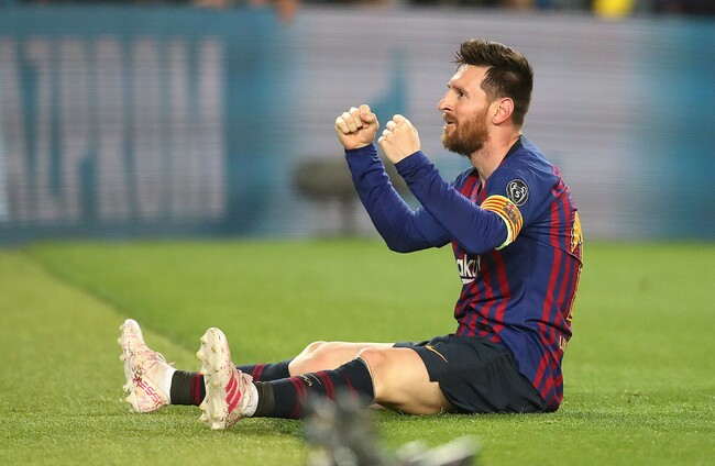 Lionel Messi celebrates his stunning free-kick against Liverpool in last season's Champions League. Adam Davy