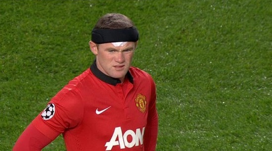 Rooney’s still sporting his protective headgear tonight: