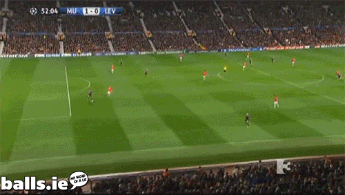 Old Trafford is singing Rooney’s name; he’s scored his 200th goal for the club to give United a two-goal lead against the Germans. De Gea made a smart save before launching the ball over the Leverkusen defence to leave Rooney to tuck it inside the near post.