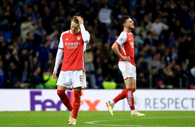 ARSENAL’S HOPES OF reaching the Champions League quarter-finals for the first time in 14 years suffered a blow as they slipped to a last-gasp defeat in the first leg of their last 16 clash in Porto.