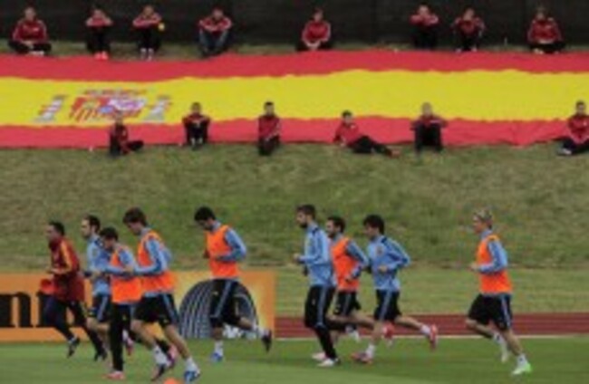 DEFENDING CHAMPIONS SPAIN went through the paces of their first training run in Poland this morning ahead of their opening match of Euro 2012 against Italy on Sunday.