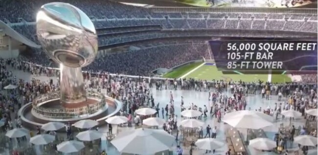 The top of the 85-foot tall Lombardi Trophy is actually the central piece of a 56,000 square-foot bar.