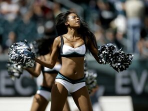 This season, the Eagles cheerleaders debuted brand new, very skimpy, uniforms designed by Vera Wang.