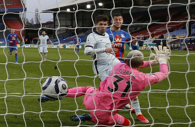 Havertz looked in the groove at last and he showed sublime touch to control Mason Mount’s lofted pass, looping it over bewildered Palace defender Gary Cahill for a low strike that forced a superb save from Guaita.