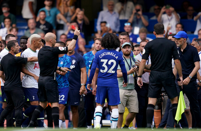 Chelsea manager Thomas Tuchel is sent off by referee Anthony Taylor. PA
