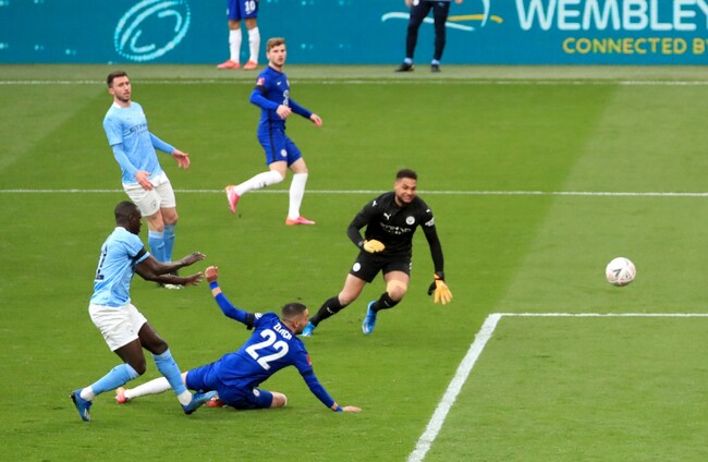 Mount played a lovely ball behind the City defence to put Werner free down the left. Back-up goalkeeper Steffen was sucked towards the ball and the forward smartly passed across for Ziyech to turn into an empty net.