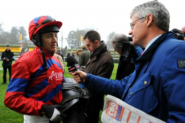 Barry Geraghty, wearing the colours of Arkle hopeful Sprinter Sacre, speaks to the media (Neil Tingle/PA Archive/Press Association Images)