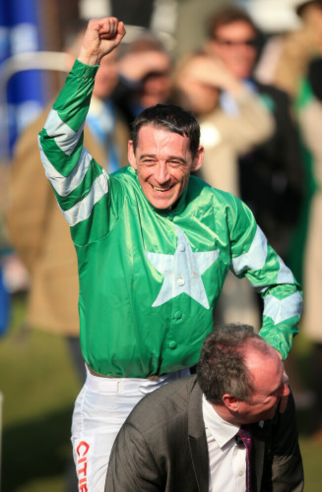 Davy Russell celebrates his win. PA Wire / Press Association Images