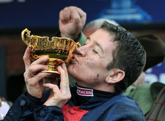 Lovely picture of Barry Geraghty with the Cheltenham Gold Cup from earlier: