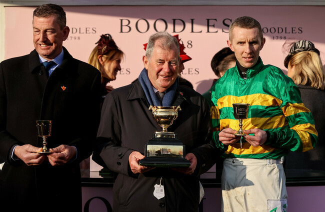 Trainer Barry Connell celebrates after winning with Marine Nationale at Cheltenham last year. Tom Maher / INPHO