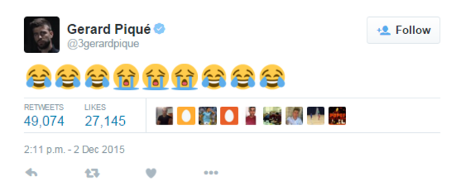 Barcelona defender Gerard Pique appeared to make reference to the controversy with this emoji-heavy tweet sent while the second half was still being played: