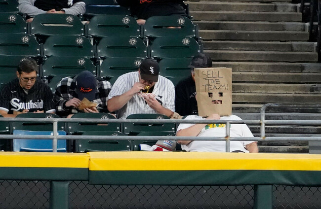A fan protests as the White Sox slump to a record-setting defeat. Alamy Stock Photo